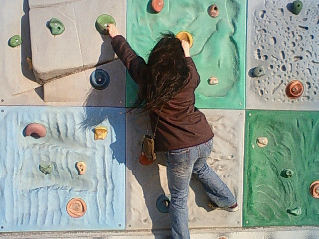 (ちなみに、ロッククライミングの壁には